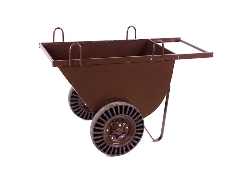 Japonka stavební je robustní konstrukce, je osazena čtyřmi oky pro snadné a bezpečné zavěšení na jeřáb či HR. Velka pevná kola vozíku (400 mm). Kola jsou z polotvrzené gumy - snadný pojezd bez píchnutí pneu. Ideální pojezd na stavbu. Japonka, stavební vozík.