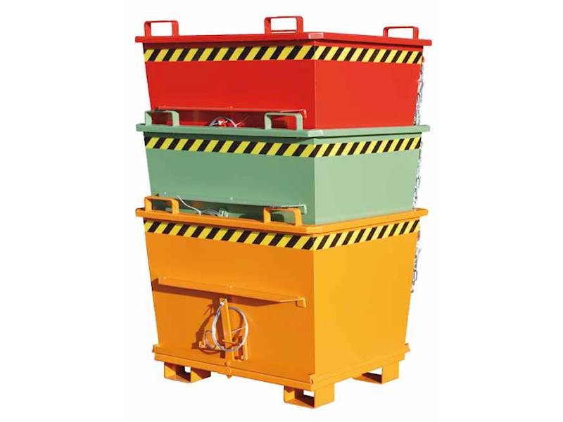 Nosnost až 2000 kg. Robustní zesílená konstrukce. Výklopné dno se zavře automaticky ve chvíli, kdy kontejner dosedne na zem. Úhel otevření 90°. Ochrana proti neúmyslnému vyklopení. Kontejnery lze stohovat, pokud je víko zavřené. Přídavné zařízení pro VZV.